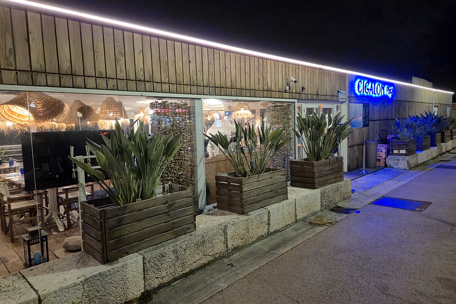 Une institution cagnoise pour cet établissement les pieds dans l'eau depuis 1966, entièrement reconstruit en 2022; grande salle à manger lumineuse, toute vitrée; terrasse sous canisses, ouverte sur la plage;