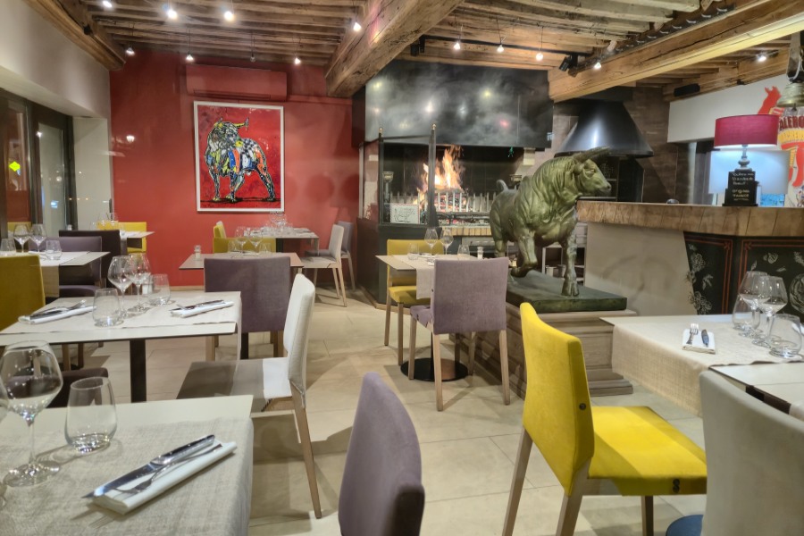 Sur le boulevard circulaire, depuis 1990, la même famille de père en fils, officie dans cette bâtisse du XIXème siècle; salle à manger sur 2 niveaux, au décor contemporain et chaleureux, au rez de chaussée une grande cheminée sert à la cuisson des viandes;