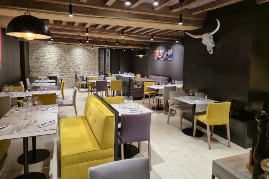 Chef: Damien Broin - cuisine régionale bourguignonne, spécialité de viande au grill: Tataki de boeuf Angus, pickles et sauce ponzu - Le jambon persillé maison et pickles - Le faux-filet de boeuf charolais, frites, sauce meurette au vin rouge - Filet de canette, Légumes du moment, sauce crème d’époisses Berthaut - La poire pochée au vin et au cassis et sorbet cassis, service professionnel. Parking Saint Jean ou parking des Chanceliers. Fermeture mardi et mercredi.