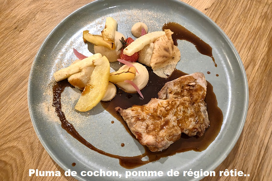 chef: Eric Rialland - cuisine raffinée innovante: Rillette de maquereau à la moutarde d'Orléans, fromage frais, gaufre croustillante, spaghettis de courgette au salicorne et sésame noir - Bruschetta aux figues noires et magret de canard fumé maison, fromage de chèvre, confit de tomate, miel de notre production, roquette - Conchiglioni farcis au veau braisé gratinés à la mozarella, purée d'aubergine, fèves et champignons, jus aux olives vertes - Pluma de cochon, pomme de région rôtie, mousseline de céleri rave et confit, jus aigre doux au miel et cidre - Figues de Solliès rôties au Muscovado et Banyuls, brioche, glace stracciatella, service efficace. Grand parking privé. Ouvert midi et soir 7 jours sur 7.