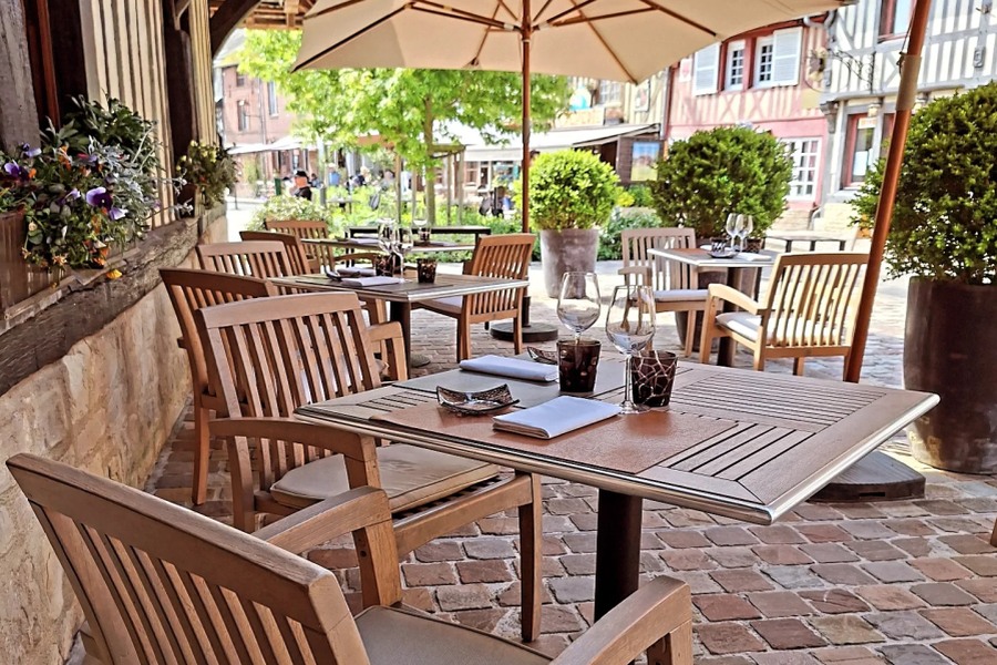 Restaurant au sein des anciennes halles au centre du village; salle à manger authentique, ayant préservé le cachet et la magie des lieux, jusqu’à la cheminée; terrasse;